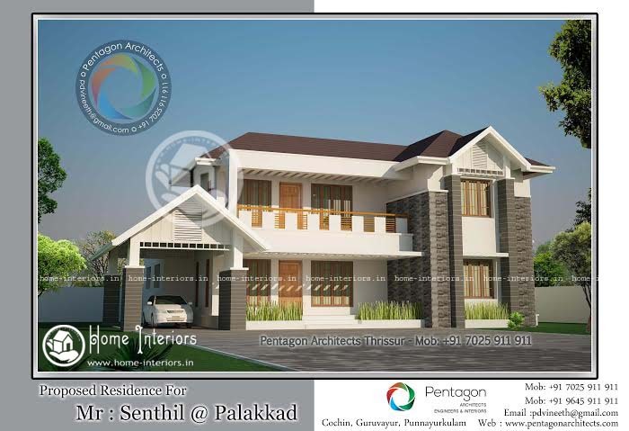 This modern contemporary style plan is designed to be built in 2150 square feet. It includes 4 bedrooms with the combination of attached bathrooms and a common bathroom. This plan is a double floored which makes out a distinctive and unique design and is estimated for about 39 lakhs. It is proved that we are good about interior designing as which it is the total creative solution for the best programmed interior of our homes. Also it provides the best conceptual planning with aesthetic and technical solutions which are applied to achieve the desired result. The living and dining room are very well designed and the kitchen along with work area are really spacious. This plan is designed in a manner for the latest interior designs. This plan is well executed by P D Vineeth, Pentagon Architets. For further details contact the designer.