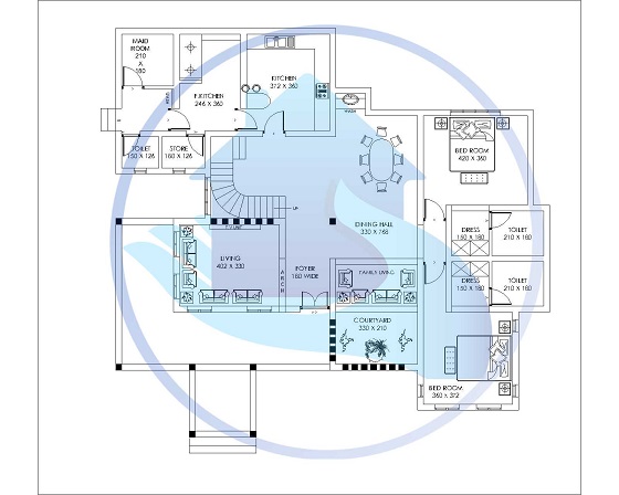 We have cratered the dreams of lot of people who are in fond of home designs and interior works. With all the credits to our crew members whoever had committed their immense work towards the new home design project “3551 Square Feet Double Floor Contemporary Home Design” to furnish up a masterpiece among the series, we first of all, introduce the new home design with a number of 4 bedrooms along with the combination of attached bathrooms and a common toilet. According to the designer, the design is well specified with the latest interior home designs which are mostly applied over the living and dining rooms to enrich the look of the beauty of the home design and also over the spacious kitchen which almost provide the entire home design more impressive.