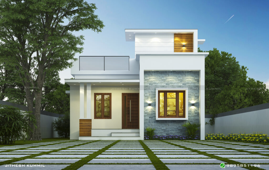 Designed by Jithesh Kummil, this plan is ideal for anyone seeking a budget-friendly, practical, and stylish contemporary house.