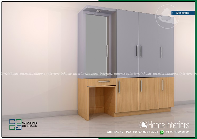 Kerala homes are designed with the most excellent and beautiful interior designs which are spectacular among the best ones. This stylish interior design is an extra ordinary one which makes out a distinctive design. Interior designing concerns itself with the best visual and ambient enhancement of an interior space which also seeks to optimize and harmonize the relevance to construct out the best environment to put on and improve our lifestyle. The practice of Interior designing enriches the pragmatic aspects of realizing buildings and structures, including construction administration, cost estimation and scheduling. Documentation produced by architects, plans and technical specifications, typically drawings, defines the structure and behavior of a building or other kind of system that is to be or has been constructed. The living and bedroom are very well designed and the kitchen along with work area are really spacious. This plan is designed in a manner for the latest interior designs. This plan is well executed by Ajithlal Lal, Wizard Interiors. For further details contact the designer.
