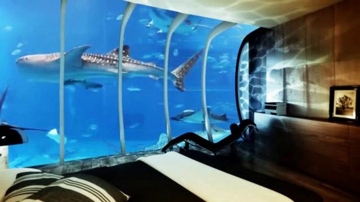 The bedroom, opened just this month, is in a room underneath the cover featuring large vision goggles that offer guests a view of the outside water and colorful world. Above the deck, find a structure of three floors offers guests all the comforts of a regular hotel, but with an incredible view room.